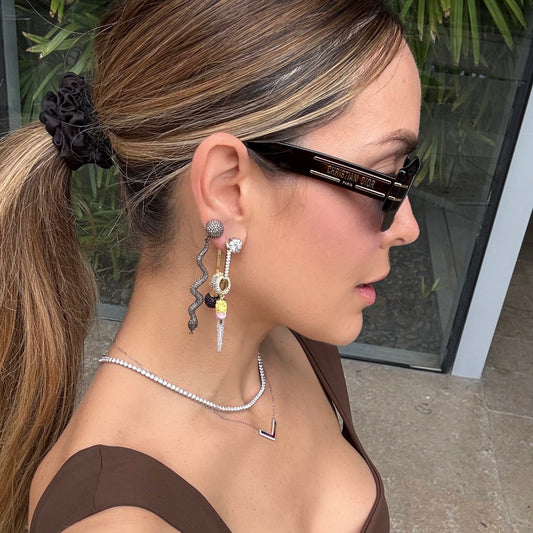CHUBBY CLEAR QUARTZ SILVER HOOPS