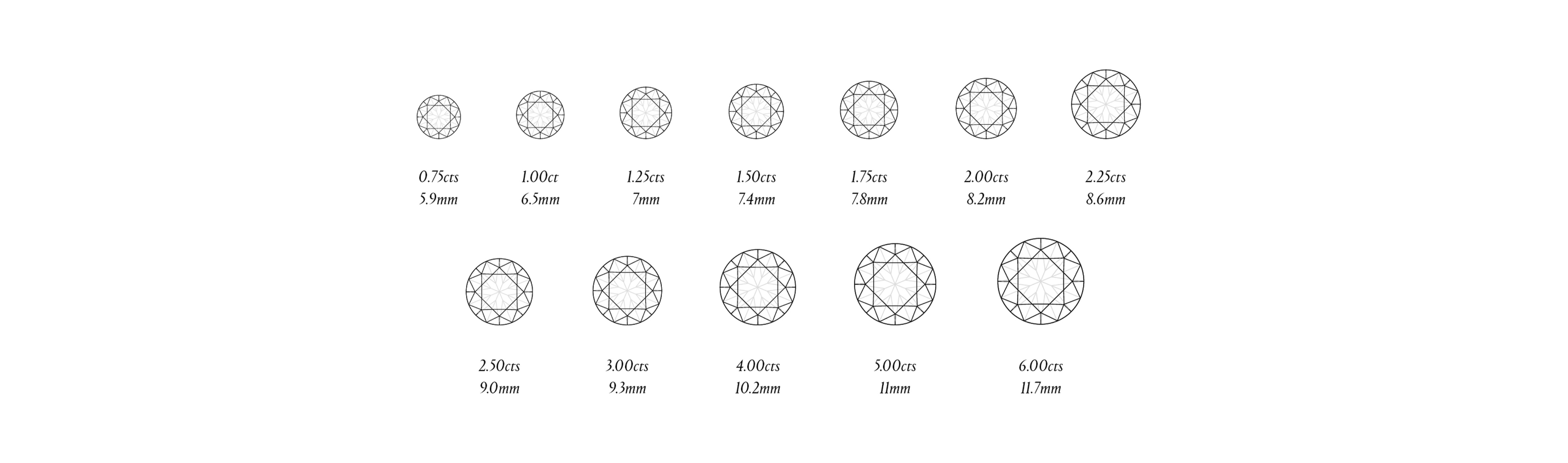When looking for a diamond, Carat should be used as a guideline but not the determining factor in your selection. Carat is not necessarily the best indication of how large a stone will appear, rather the measurements of the diamond are a more important reflection of “size”.