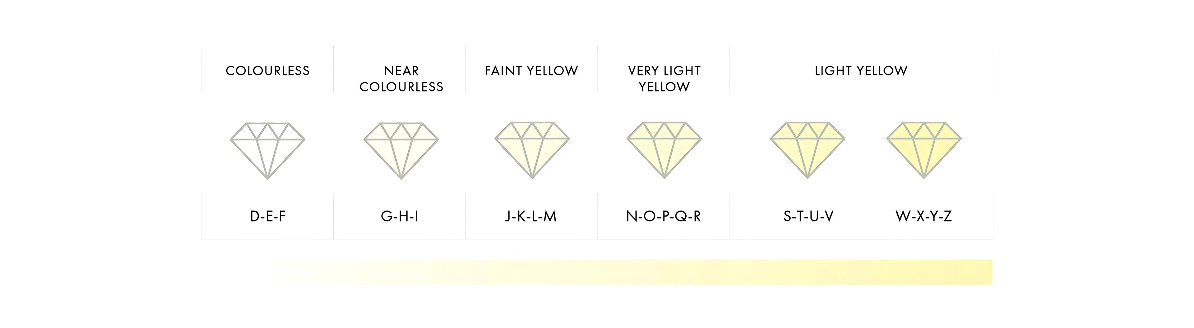 The Gemological Institute of America (GIA) grades diamond color on a scale from D to Z. While most diamonds appear to have no color to the untrained eye, most stones usually contain slight tones of yellow. The rule of thumb is that you need to jump two color grades to see a noticeable difference in color.